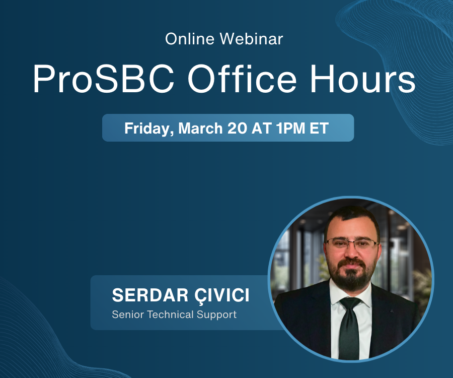 Have questions about ProSBC or SBC in general? Join us during our live Office Hours session and get direct answers from our technical team. Whether you’re evaluating ProSBC, troubleshooting a deployment, or exploring SBC best practices, our engineers are here to help.